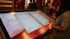 依托于先进的裸眼3D与大屏触控等核心技术,以及3D产业化与内容创意能力,北京鲸世科技创造性地将“智能显示实时交互”解决方案应用于马克思主义学习教育中。在展现马克思经典著作《资本论》时,康得新用65寸ITO大屏触控与85寸裸眼3D显示屏进行双屏互动,将《资本论》以3D方式展出,参观者可从多角度观摩书籍外表细节,也可手触翻看阅读章节内容。同时还通过电容触控大屏展示了《毛泽东选集》著作,以及“社会主义革命、建设、改革的伟大成就”,“革命烈士生平事迹”等主题内容。值得一提的是,现场还有基于大屏触控的马克思主义“有奖问答”,生动而有趣,观众排起长队争相参与。